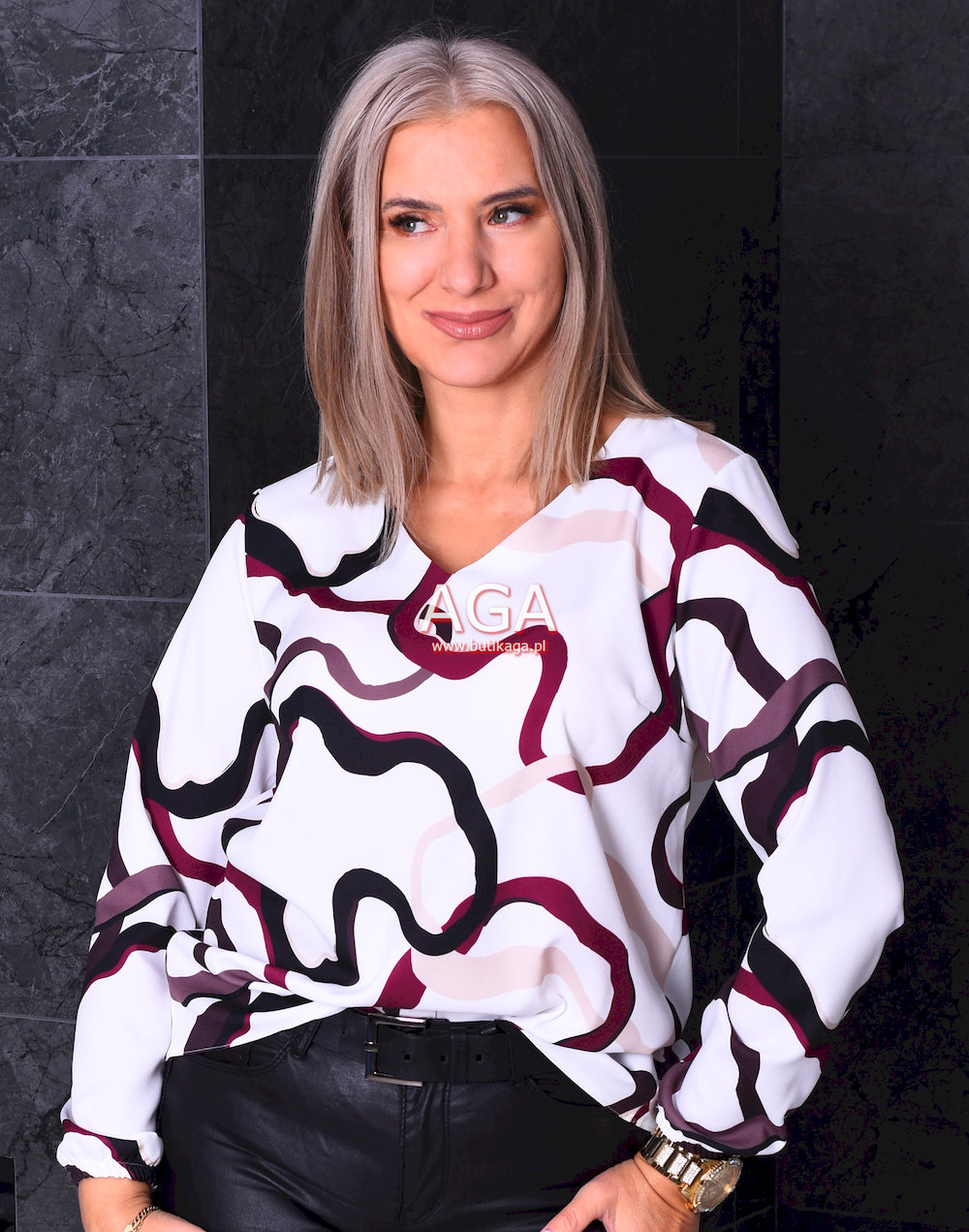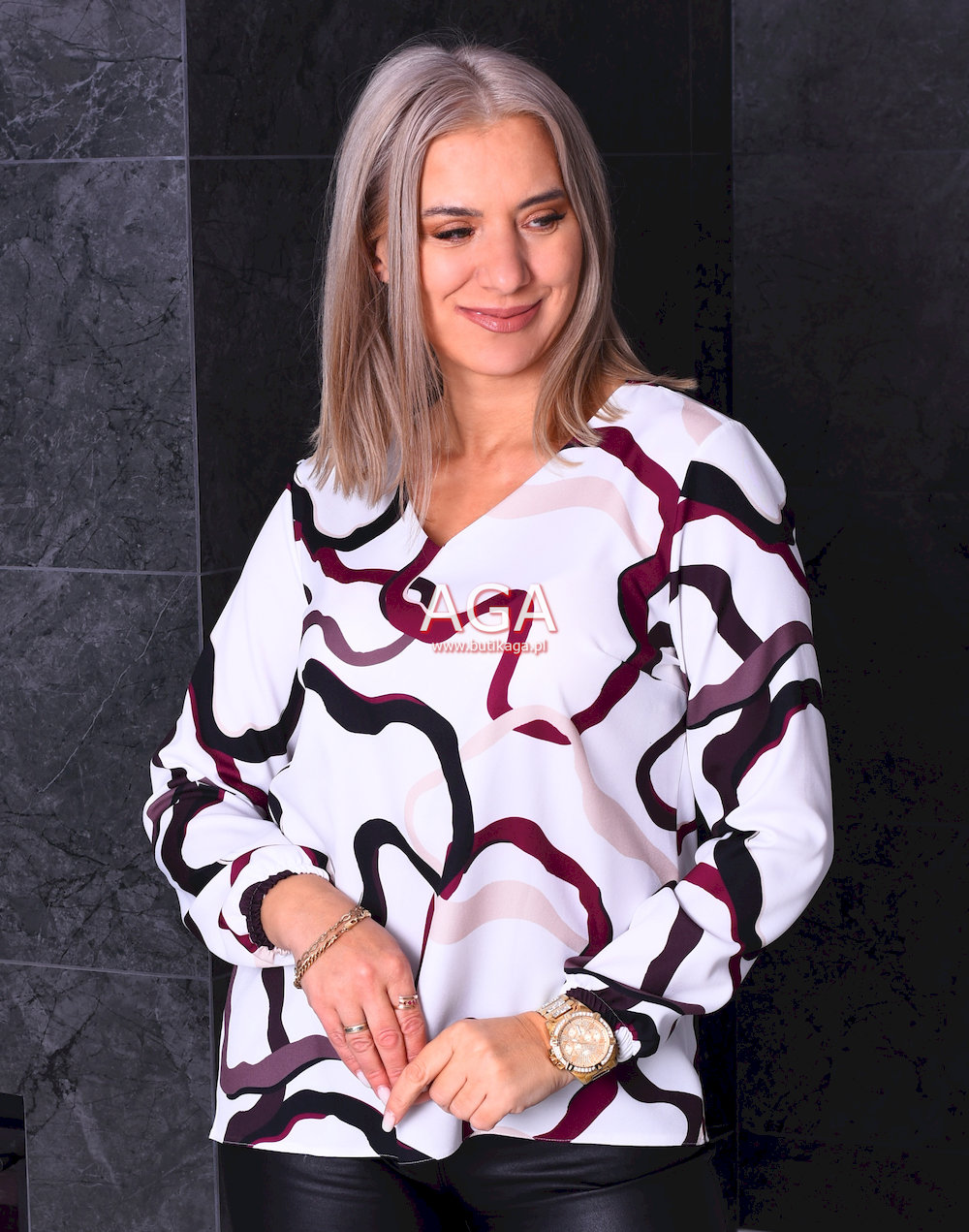 Klasyczna bluzka z dekoltem w serek z eleganckiej tkaniny w najpiękniejszych printach i kolorach tego sezonu. Rękawy wykończone gumką.