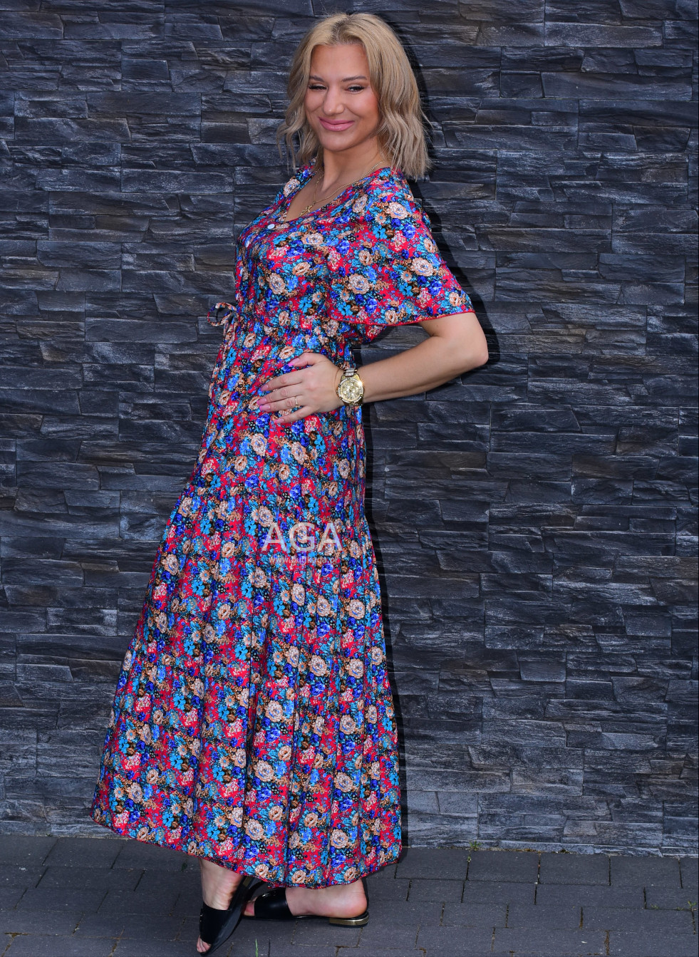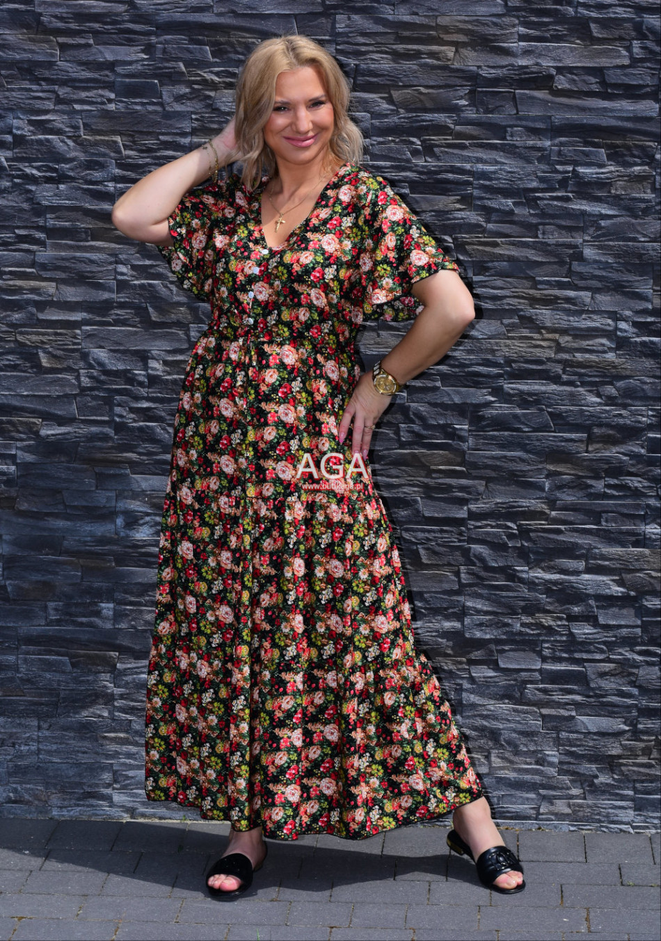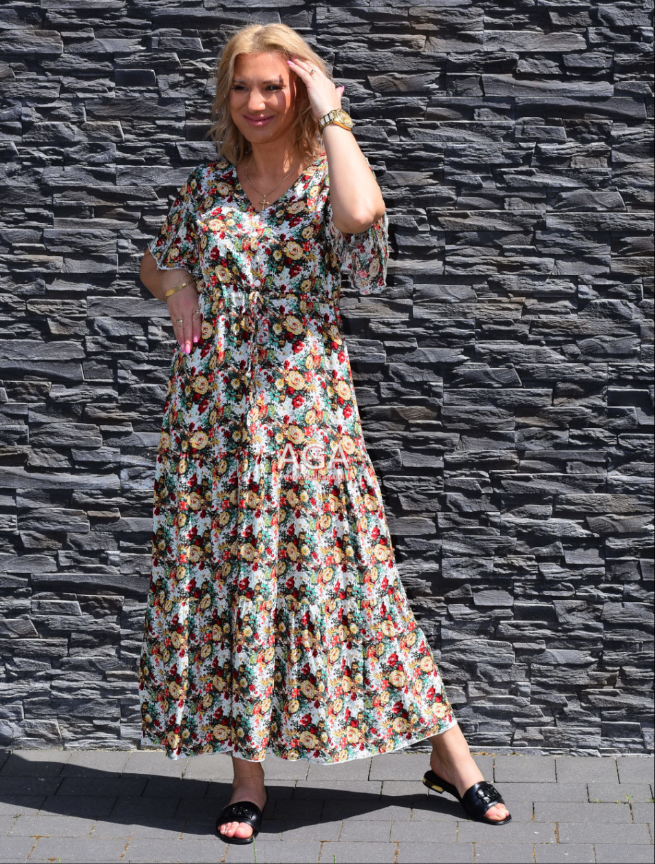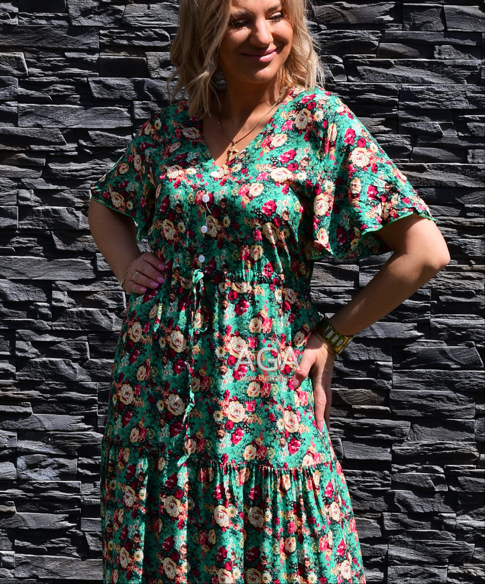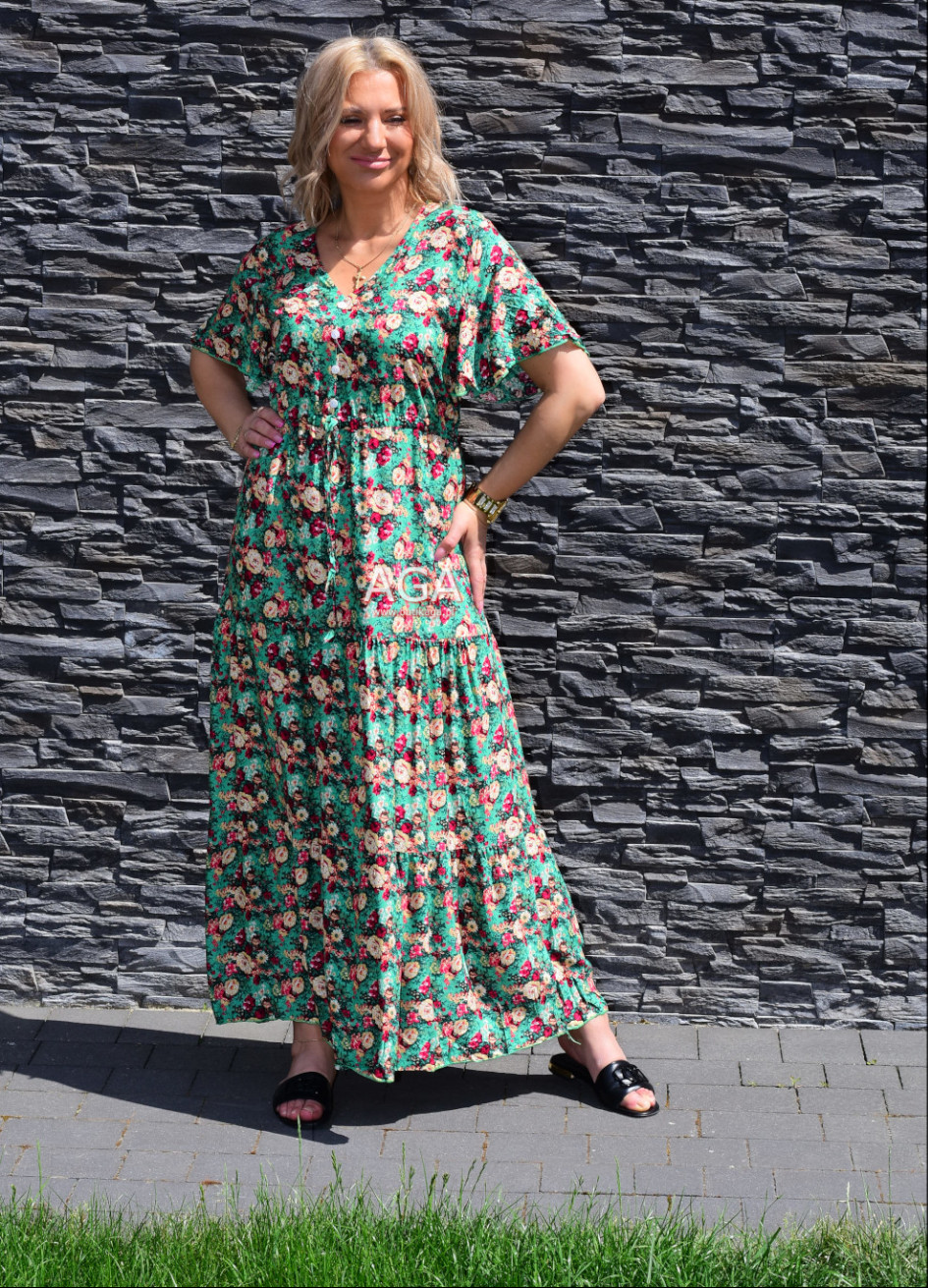 Letnia zwiewna sukienka maxi świetnie sprawdzi się na gorące dni. Uszyta z lekkiego przewiewnego materiału. Guziki przyszyte w dekolcie nie są rozpinane. Wyjdziesz w niej na wszelkiego rodzaju okazje – spacer po mieście, wesele, wycieczka nad morze, impreza…